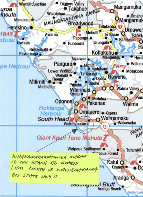 the Waipoua Forest. Road is sealed. The marae is 10 mins past the