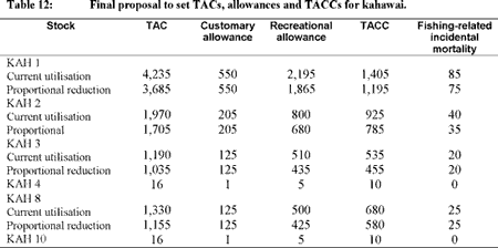 setting TACs for kahawai stocks. MFish has concluded that rather
