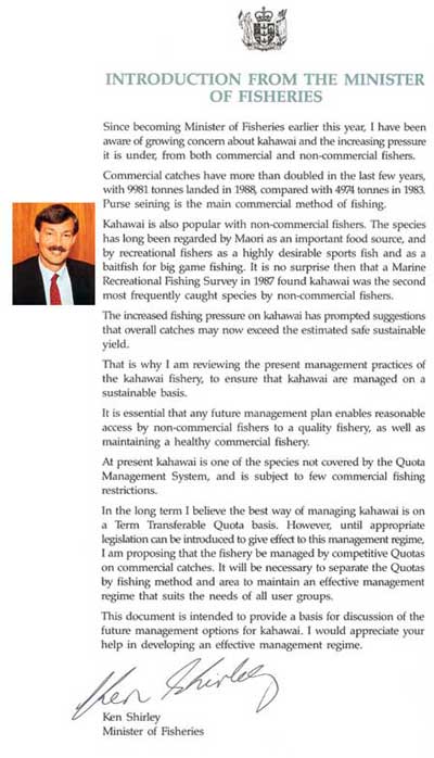MINISTERS LETTER ON KAHAWAI MANAGEMENT