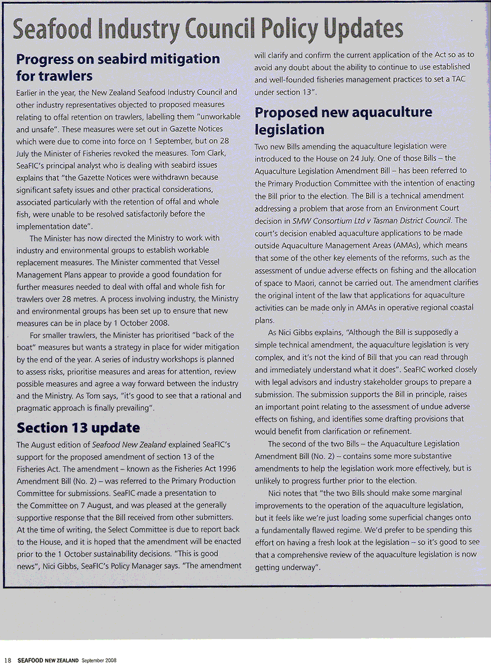 Council (SeaFIC) and Te Ohu Kaimoana (TOKM) had worked together