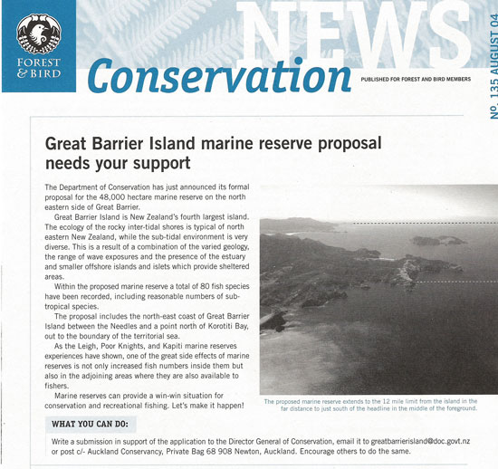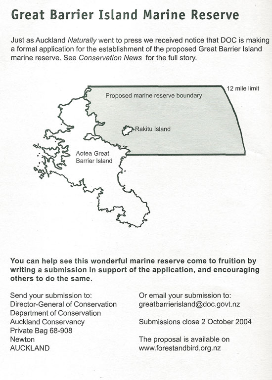 for a marine reserve at Aotea (Great Barrier Island). |