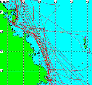 Department of Conservation Northland Conservancy Office, Dear Sir/Madam I object to the Mimiwhangata Reserve Proposal both map options 1 and 2, on the grounds they extend much too far out to sea. This is right in the route of small vessels transiting between southern areas (Auckland, Kawau, Tutukaka) and Bay of Is, which is surely one of the most well-travelled routes of recreational vessels. Trolling is a common activity for leisure vessels when making passage, and since this is a secondary activity on usually a very long passage, "non-active fishing" if you like, it's going to be real easy to catch people who have accidentally left their gear out. The reserve may have the effect of pushing trolling vessels which are transiting the area out to sea, in fact more-or-less into the shipping lane between Poor Knights and the coast. I have attached a map logging my recent trips through the area. As you can see, and ignoring trips which call into Whangaruru, pretty much all transit trips pass through the proposed area. It is also hard to see why a reserve should extend so far out to sea, because in the dozen or so trips I do each year in that area, very few vessels are seen bottom-fishing except very near the coast. I do not object to the existing boundary of the existing special protection area.