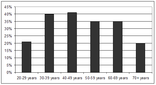 Survey findings provide considerable information about fishery participation. Our findings are consistent with the 2000 national marine recreational fishing surveys, with 34% of respondents participating in recreational marine fishing. Over 40% of 30-50 year old males participate.
