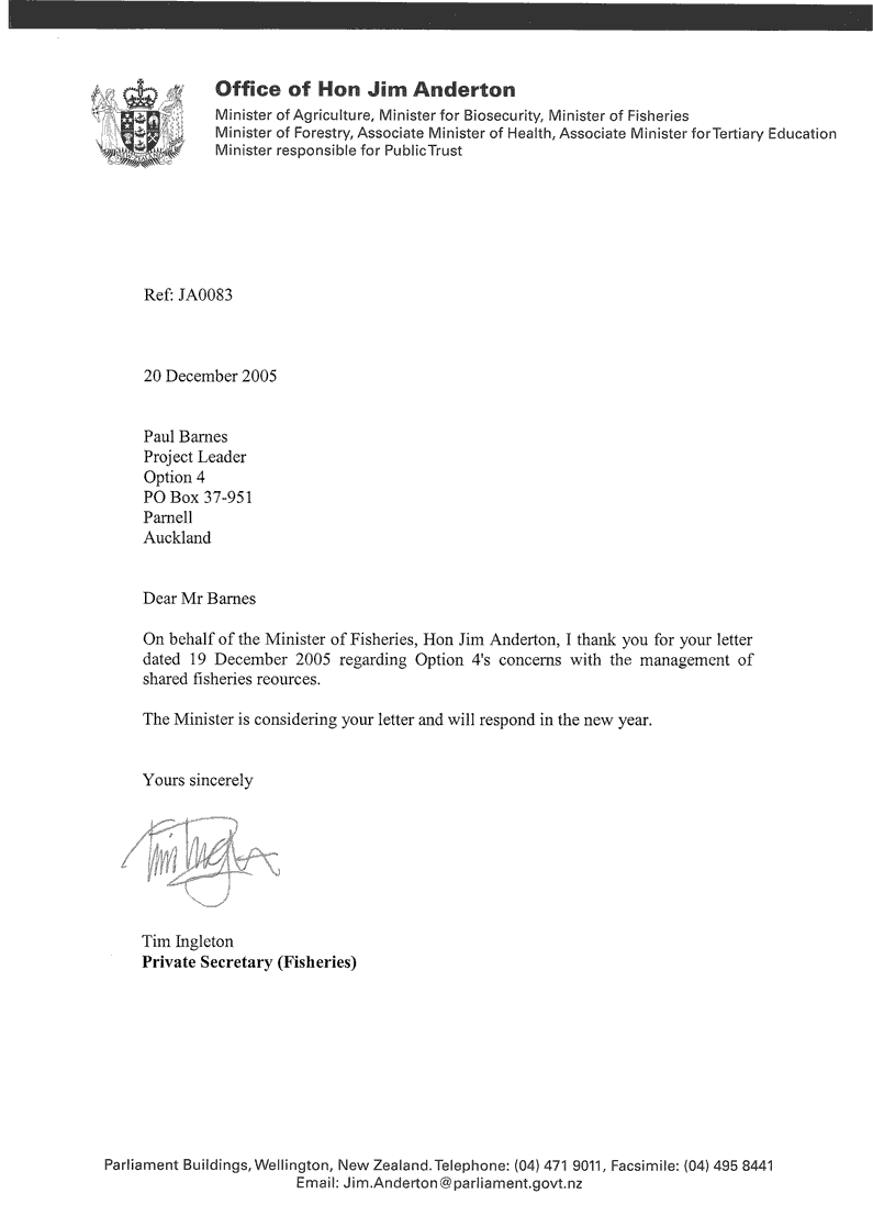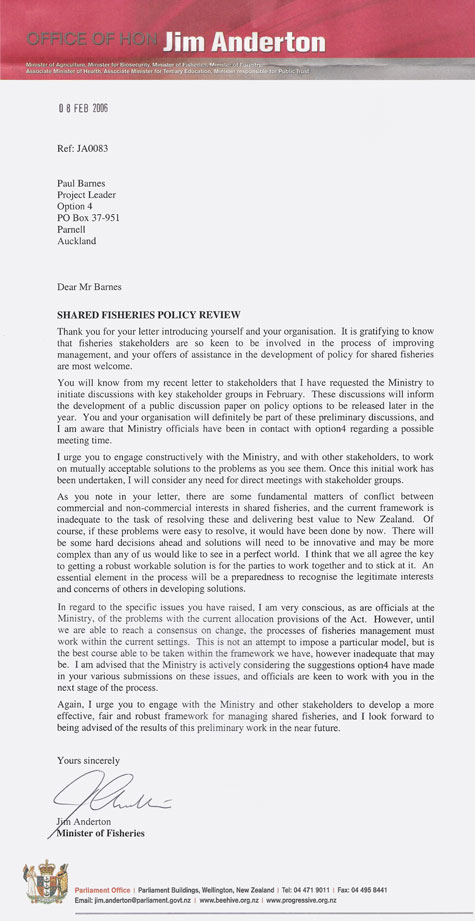 of The People's Submission and advise Jim Anderton the NZBGFC